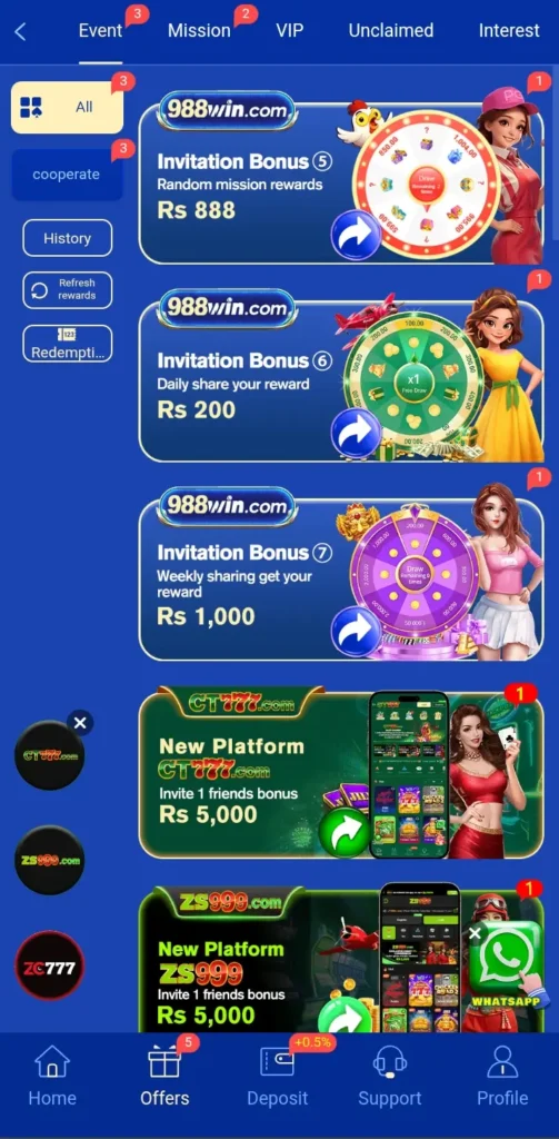 Sometimes the platform offers limited-time bonuses, cashback offers, or extra rewards during events. Keep checking the promotions section.